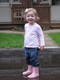 My kids LOVE playing in the rain--especially jumping in the puddles. And I had a great time watching them and taking pictures. Sadie loves her rain boots and will take any opportunity to wear them--and we are still looking for some for Wyatt!